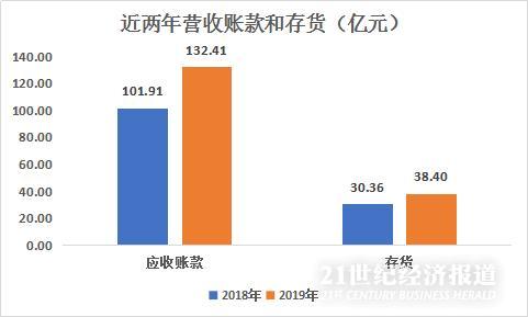 从年报来看,公司2019年应收款项和存货均有较大幅度的上升。数据显示,公司2019年应收账款132.41亿元,同比增长29.93%,存货价值38.40亿元,同比增长26.48%,这两项数值近年来均呈现上升趋势。