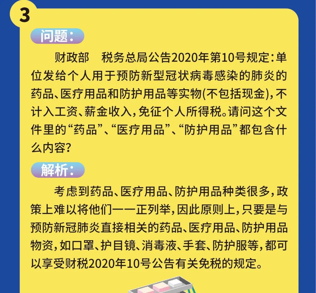 各位小伙伴,前两期的“疫情防控个人所得税税收优惠政策的问题“小锦囊”你都get了吗?本期小编继续为您“有问必答”,这一期让我们一起来了解防护救治减免税、科研攻关税收优惠、经营损失税前扣除的相关内容吧!