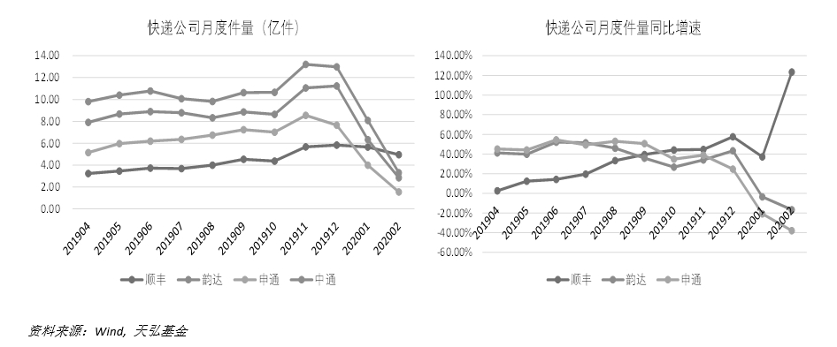 中期来看,快递作为物流的核心,恢复程度要领先于整个经济体,而且行业整体增速仍然较高。2月底,行业整体复工率达到8成左右;3月复工已基本完成,件量增速预计也将逐步恢复到20%水平,预计2季度将受益于疫情对线上消费模式的改变带来业务量增速的持续提升。