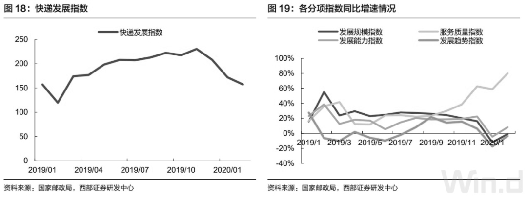西部证券研报认为,疫情下,居民网购生活必需品保持高频态势,支撑快递需求。伴随派送端复工,预计3月起件量将逐月提升。近期政府陆续出台免收增值税、通行费暂免、减免社保等政策利好快递公司成本端,但考虑疫情对件量的影响,一季度业绩或有冲击,政策利好可能需要到二季度才能反映。