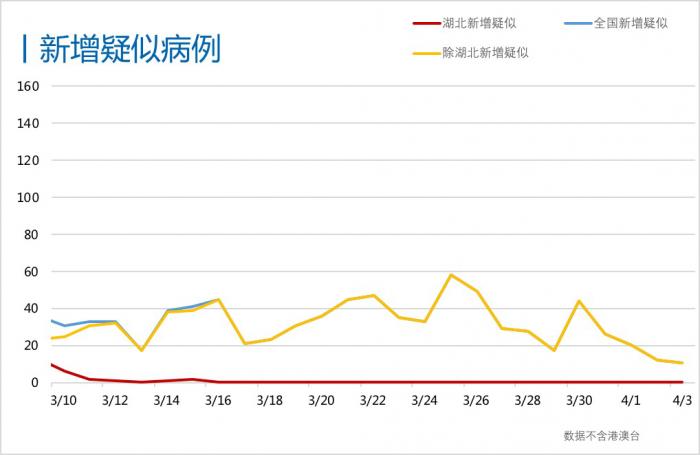 截至4月3日24时,全国现有疑似病例114例,新增疑似病例11例,均为境外输入病例。其中湖北现有疑似病例保持为零,已连续19天零新增。