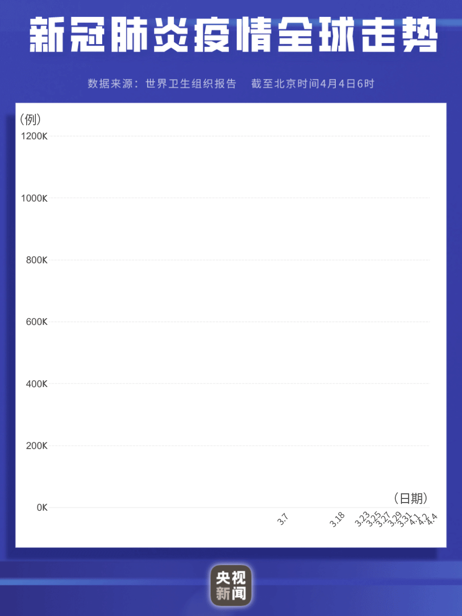 世卫组织最新统计数据显示,全球新冠肺炎累计确诊病例已突破100万:截至北京时间4月4日6时,全球累计确诊1009625例,死亡50489例。