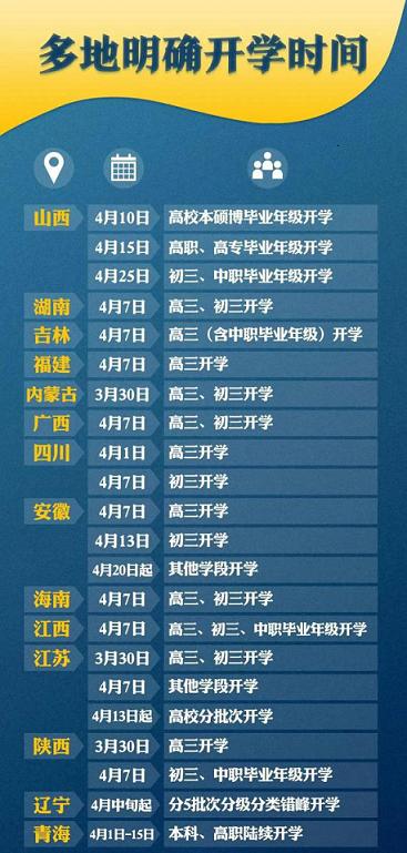 伴随疫情的控制,全国各地开始明确公布开学时间,截止3月底,全国有20余省份敲定了“双三”班的开学时期,但是对于数量更庞大的幼儿园和小学家家长们,看到下面这张开学时间表却更加焦虑。