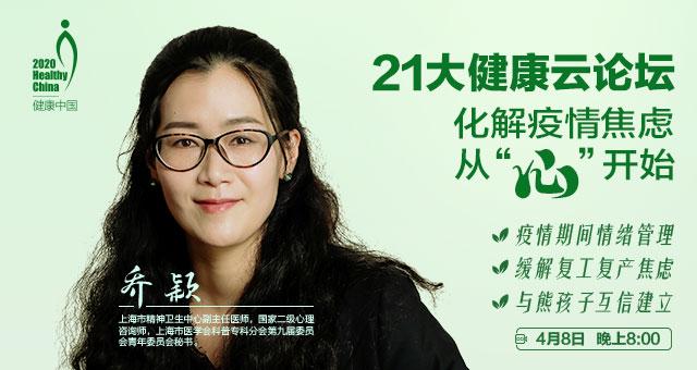 疫情期间居家隔离产生生活焦虑,复工复产后经济环境带来工作焦虑,如何缓解疫情期间各种焦虑及与“熊”孩子朝夕相处的亲子关系,21大健康云论坛邀请上海市精神卫生中心副主任医师乔颖从心理角度寻找解决途径。