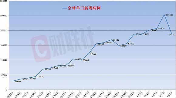 美国约翰斯·霍普金斯大学6日发布的全球新冠疫情最新统计数据显示,全球4月5日全天新增确诊病例数7.47万例。截至北京时6日16:33,全球累计确诊病例数已超过127.6万例。全球4日新增确诊病例超过101500例,首次超10万。