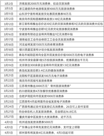 截至4月6日16:00,杭州电子消费券一期兑付政府补贴1.45亿元,带动杭州消费18.05亿元。电子消费券二期兑付政府补贴5736万元,带动杭州消费4.21亿元。小长假三天,消费券带动杭州消费7亿元。与杭州发放电子消费券相呼应,据郑州市商务局统计,自4月3日发放消费券,截至4月6日13时,已兑付政府补贴1701万元,带动郑州市场消费2.01亿元,消费拉动作用明显超出预期。