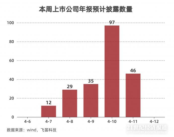 本周内,预计共有219家上市公司将发布年度财报,除截至发稿已经发布的11家以外,还有208家将在本周内发布年报。预计4月10日为发布高峰,将有97家上市公司发布年报。其中,有许多上市公司市场关注度较高,包括韦尔股份、东方财富等行业头部企业或人气公司,还有道恩股份等近期市场热门股。