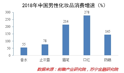 就我国而言,据《2019年颜值经济报告》显示,男性化妆品中口红的消费增速达到了278%,越来越多的男士开始使用口红、眉笔、防晒和面膜等男性化妆品;2018年男士专用品牌的同比增速达到了56%,很多化妆品公司专门为男性消费者开发男士专用脸部护肤套装、洁面乳、乳液乳霜、专用面膜、BB霜和CC霜等。此外,在服装领域,男性消费者也显露出极强的消费潜力。