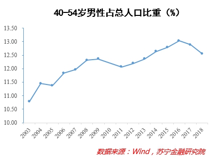 归根结底,消费市场的兴旺源自收入的增加。根据西南证券的研究报告,男人的黄金年龄是40 岁,进入该阶段的男性,无论是财富还是社会地位都有了积累,其消费能力和消费档次也远远高于其他年龄段男性,而国内40~54岁的中年男性人口占比也在逐步提升,这也助长了“他经济”的崛起势头。