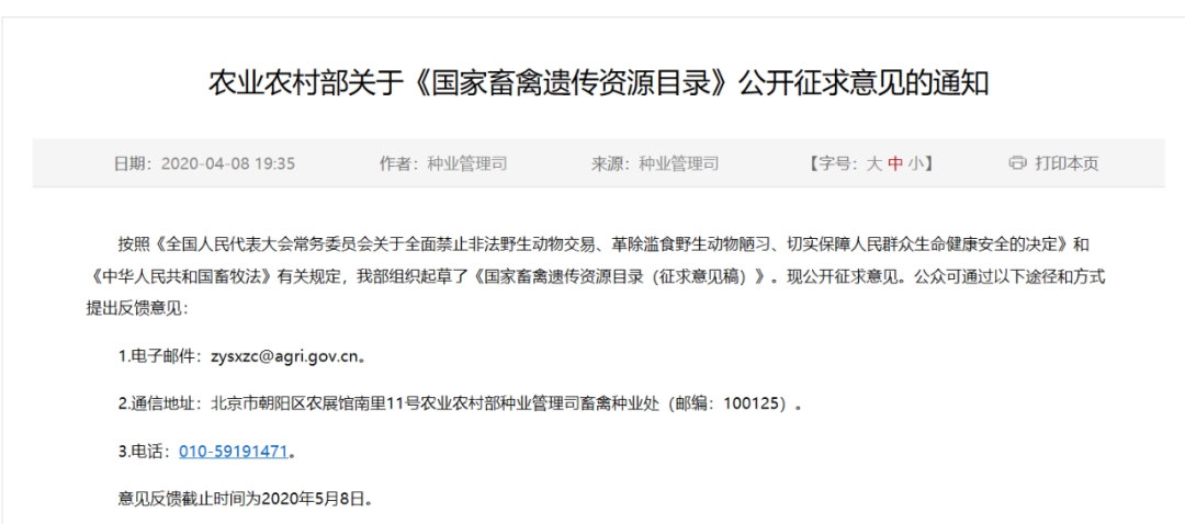 4月8日晚,农业农村部官网正式公布关于《国家畜禽遗传资源目录》公开征求意见的通知(下文简称《目录》)。《目录》包括家养传统畜禽和特种畜禽共31种,可以用于食用等商业利用。