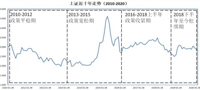 关于定增的政策近十年也发生了明显的阶段变化,从2010-2020年,定增政策大致可分为平稳、宽松、收紧、松绑四个阶段。四个阶段的走势与指数的涨跌幅也较为一致,其中最引人注目的是2013-2015再融资、并购重组政策宽松,我国正处于经济转型(互联网经济快速发展,国家大力提倡“大众创业、万众创新”)阶段,A 股定增市场活跃,也催生了2014-2015年的牛市行情。
