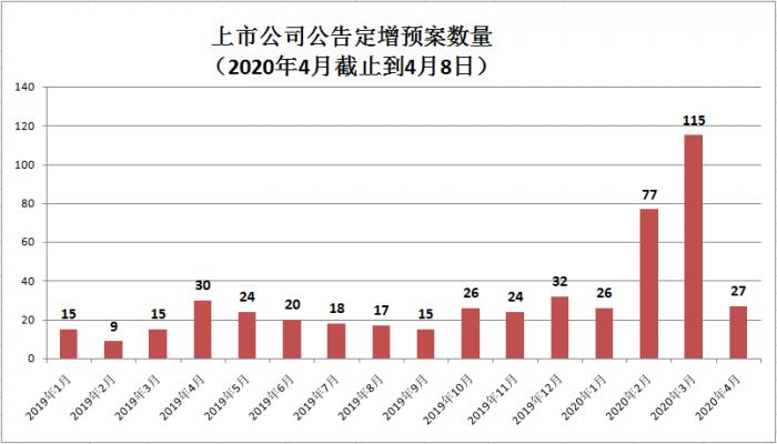 2)上市公司定增募集的资金可以通过并购或项目投资,增厚自身盈利,从而推高股价。新规正式落地以来,市场热情空前高涨,至4月8日,已经有212家上市公司公告了定增预案。