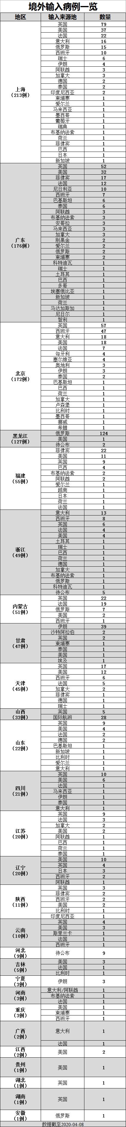 英国、美国、俄罗斯是境外输入主要来源地。截至4月8日24时,英国已累计输入病例290例,美国输入152例,俄罗斯输入150例。(详情查看文末附表:境外输入病例一览)