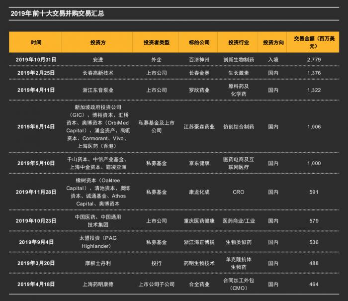 2019 年是全球医药并购“大年”。