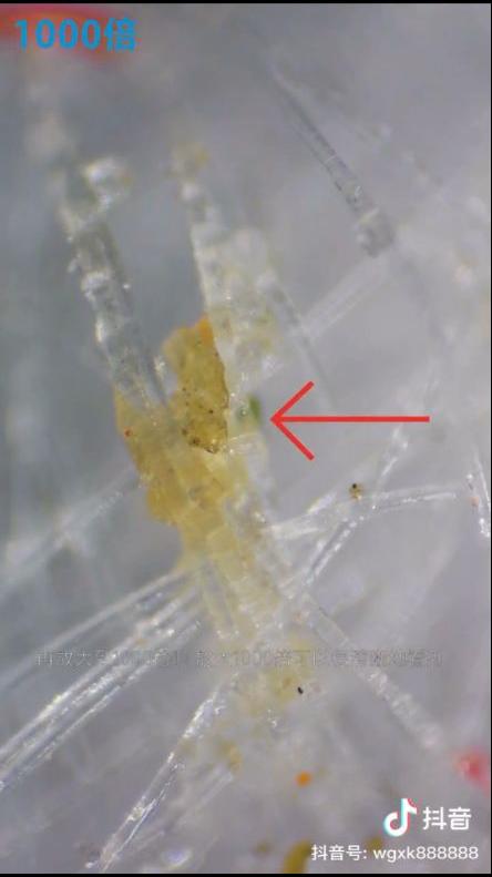 再接着放大到1000倍,更清楚的看到了口罩纤维上附着的颗粒。