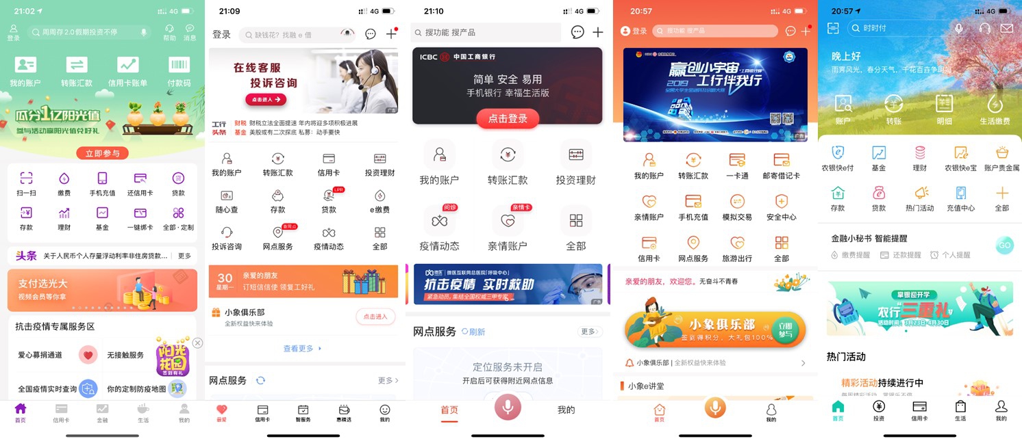 上图:10家国内手机银行APP主界面赏析