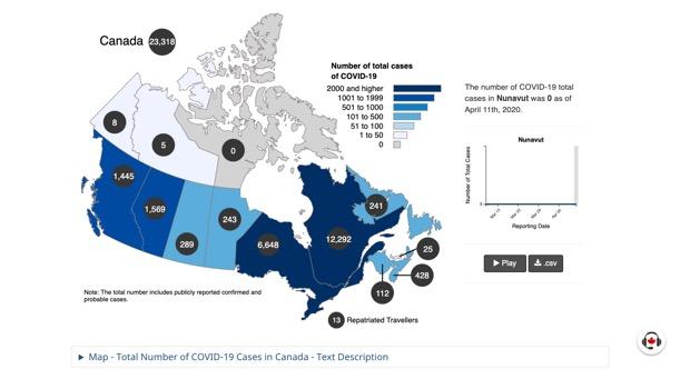 (4月11日,加拿大疫情图 来源:加拿大政府网截图)