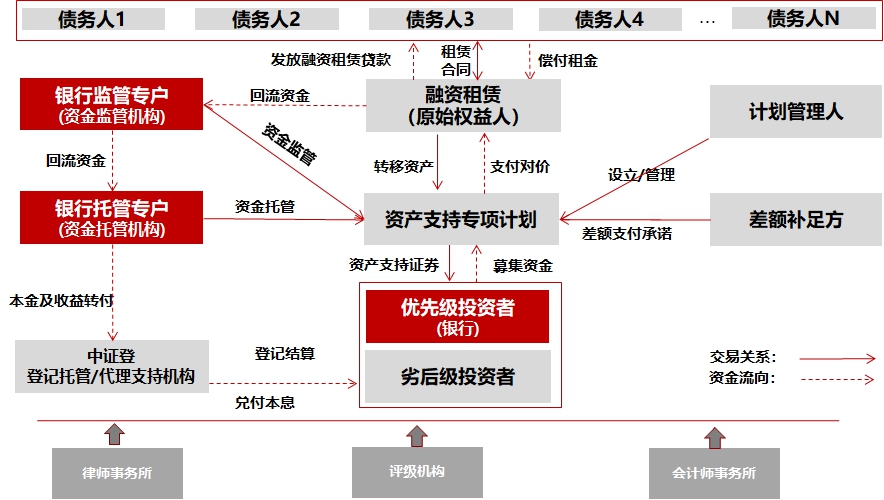 知识产权资产证券化(ABS)就是基于无形知识产权产生的可预测、稳定现金流为基础资产,发行可以在市场上流通的证券。在此类项目中,银行业务机会包括开立托管户、监管户,认购优先级份额并可拓展债务人资金账户等。以融资租赁模式下ABS产品为例,债务人(即药证持有人)可将各自持有的药品上市许可授权给租赁公司获取融资贷款,然后再通过租赁合同获取上市许可使用权并定期向租赁公司支付租金。租赁公司以上市许可费应收租金为基础资产,发行资产支持专项计划。