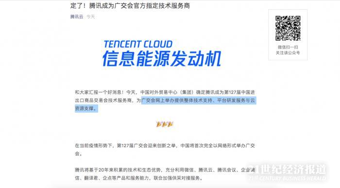 腾讯官宣,成为广交会“云办展”技术服务商。