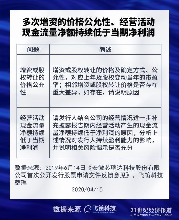 2019年6月14日,发审委就公司招股书发布了反馈文件,就公司规范性问题、信息披露问题、与财务会计资料相关的问题提出了43个疑问。其中,有两大问题值得特别关注,分别是历次增资或股权转让价格公允性、经营活动现金流量净额持续低于当期净利润问题。