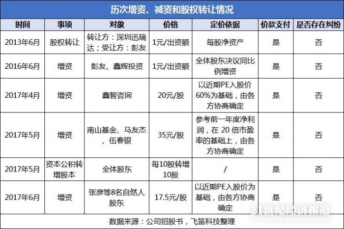 公司第六次股权变动发生在2017年6月,增资引入8个自然人,增资价格17.5元/股。对于增资价格及依据,招股书表示,“本次增资价格为17.5元/股。近期PE入股价35 元/股,经资本公积转增股本后的除权价格为17.5 元/股,定价依据以此为基础,由各方协商确定”。