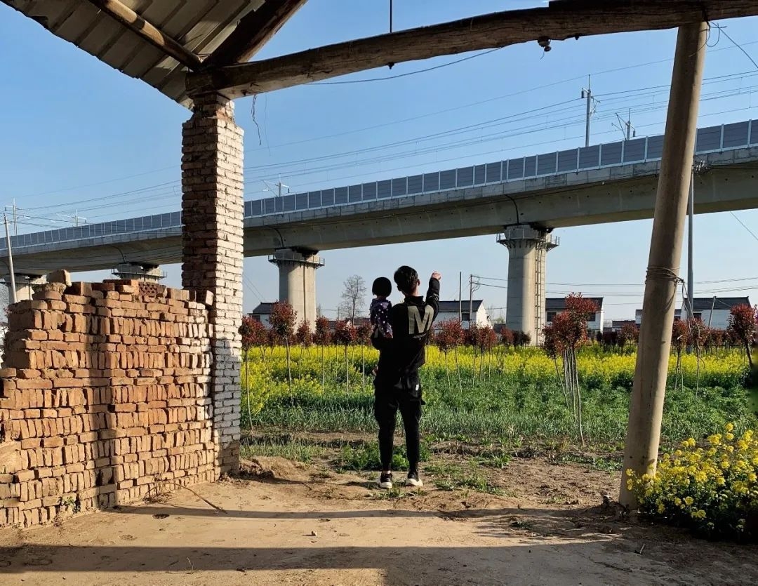 ▲“看,那是高铁,速度很快,嗖一下就能到上海啦,”指着家门口的高铁铁轨,徐牧跟女儿解释她眼中的这个“庞然大物”。2017年徐盐高铁开建,去年年底正式运营。“和谐号”列车,从徐州高铁东站一路飞驰,直抵观音机场高铁站、睢宁高铁站。睢宁县成为徐州首个迈入高铁时代的县城,同时也成为全国少有的一县双高铁站的县域。