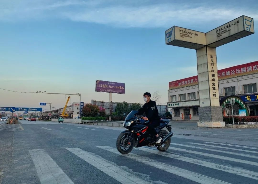 ▲看完孩子后,徐牧骑着摩托车,直奔工厂。沙集镇位于睢宁县东部,跟宿迁接壤。徐牧身后就是“沙集农民网商一条街”的标语,它承载着一个苏北小镇的互联网梦想。十年发展后,这些标语已经开始凋落,沙集镇上有1.62万个家具电商,1300多个实体企业,与此同时,传统电商平台上的流量越来越贵,徐牧每天都要和同行交流,“去哪里做电商还能有机会”。