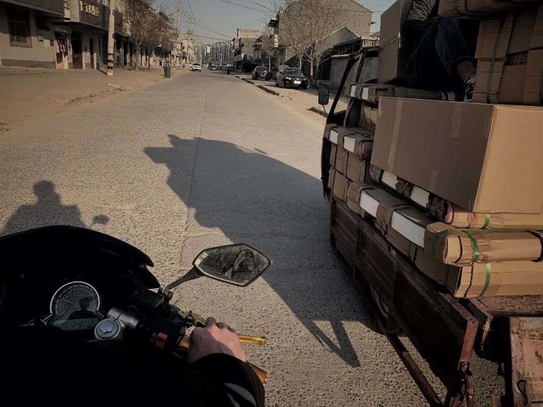 ▲每天总有“开心一刻”。对徐牧来说,这个时间是晚上6点。快递员会来工厂,把一天的包裹搬上小货车。以前电商不发达,一个村的单量少,商家要自己把货送到附近网点。现在物流公司都在争抢客户,不但单价打了4折,还会上门揽收。不过因为疫情,徐牧最近每天都会骑着小车,跟在大车后面,去分拨中心看看情况。