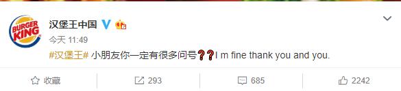 上述破产消息刷屏之后,汉堡王(中国)还发布了一条“I‘m fine thank you and you”的微博内容,疑似针对传言进行澄清,并在留言区中回复网友有关留言:“我会一直在”。