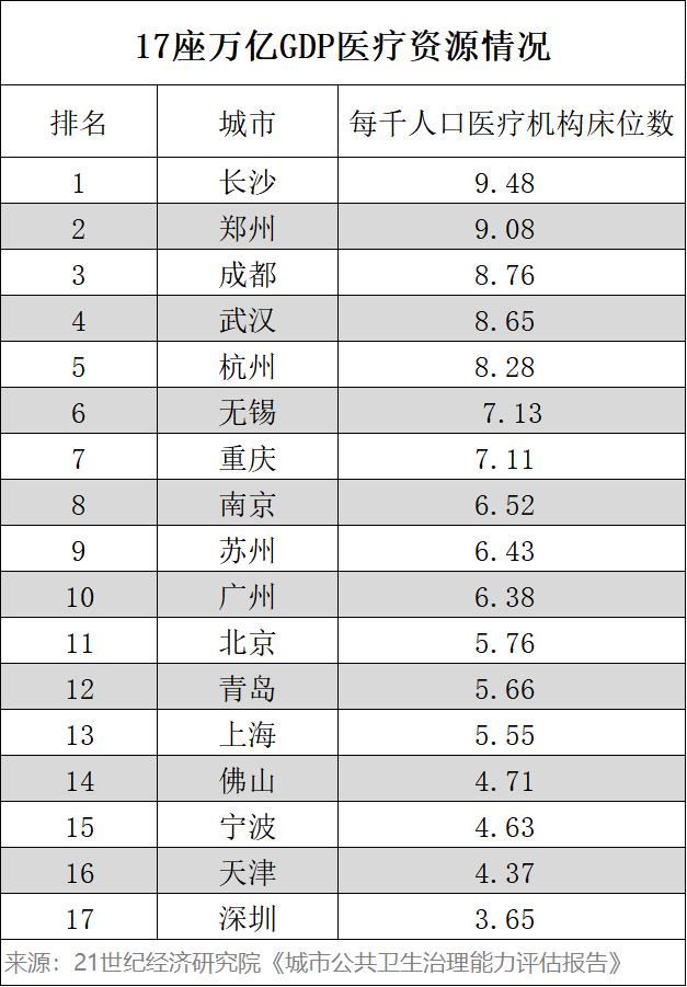 人均病床9.48张,跟同等城市相比是什么概念?这一水平,不仅在17个万亿GDP城市中最高,超过了北京、上海等众多经济大市,更是居全国首位。