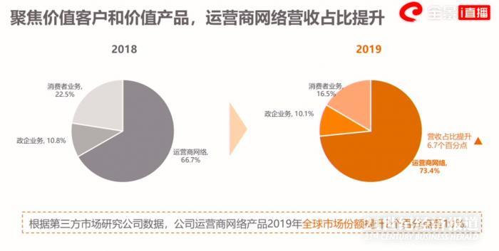 执行副总裁兼财务总监李莹介绍,2019年公司的运营商网络部分整体业务营收达到历史最高,国际市场中,在印尼、俄罗斯、泰国等市场份额得到提升,5G承载等产品在意大利、西班牙等高端市场也取得突破。
