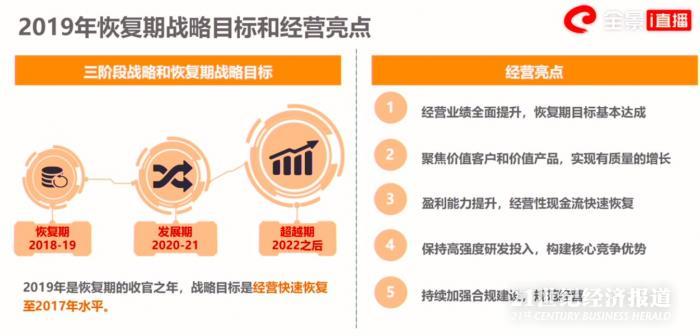 2019年,中兴通讯按照此前规划踏稳了恢复发展的第一步,完成了让2019年经营能力恢复到2017年水平的目标。按照规划,2020-2021年公司将步入发展期,到2022年之后将走向超越期。