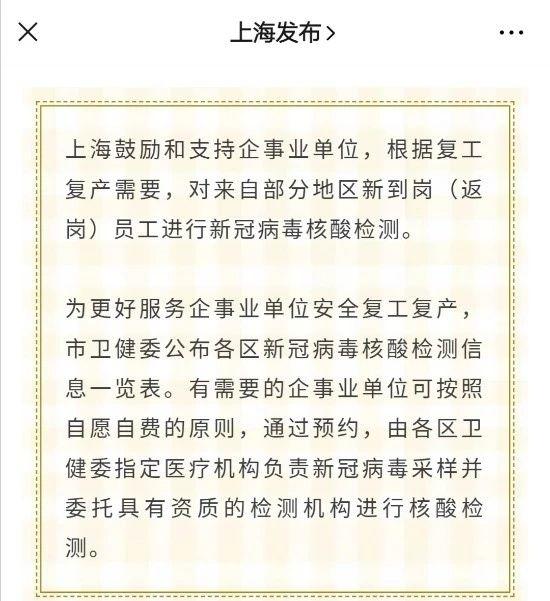 一般来说,无论是“团购”模式还是“单机”模式,各地复工检测主要还是以自愿为前提。不过,不少地区对来自武汉的返工人员进行了较为严格的规定,复工检测对于来自武汉的小伙伴来说几乎是必须的。