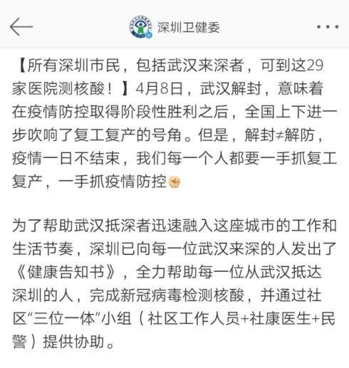 流动人口大城深圳近日就发布了一则关于复工检测的通知,要求持有绿色健康码的武汉抵深人员,必须向社区提供核酸检测报告或者在抵深后1天内进行核酸检测,并且在7天后再次进行检测核酸检测;而未持有健康码或者持有“红码”、“黄码”的武汉抵深人员除了需要进行核酸检测外,还要进行14天集中隔离医学观察。宁波、北京等地也有类似规定。