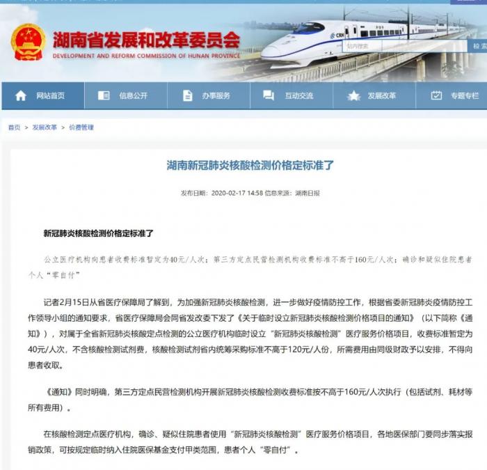 目前,21新健康记者调查发现,新冠检测项目并未进行统一定价,各地出现了“花式定价”的局面,各地、各机构给定的价格差距比较大,从100多元至300多元不等。目前,只有湖南对省内核酸检测项目进行了统一定价,而其他地区似乎还没有“抄作业”的意思。