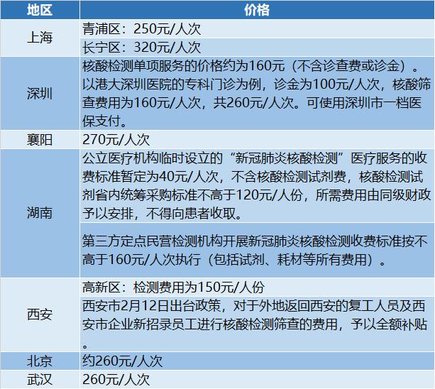 随着复工复产逐步推开,自掏腰包和统一买单的各类检测频出,各地价格也有所不同。