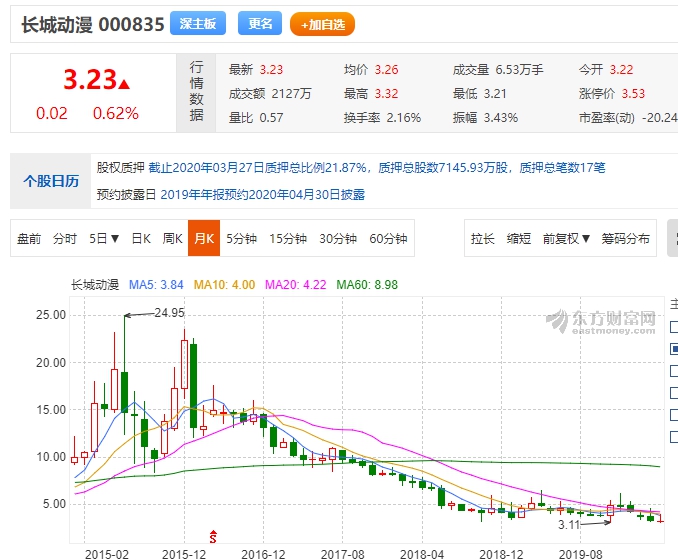 事实上,自2018年下半年,长城集团就爆出了资金链危机,2019年10月,长城影视、长城动漫双双公告,长城集团质押的多笔股权存在违约风险。