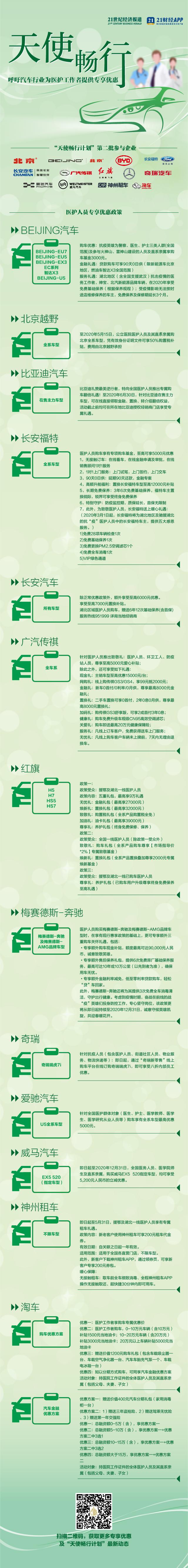 21世纪经济报道特别推出“天使畅行计划”,郑重向汽车行业发出呼吁:倡议汽车行业向医护工作者提供专享优惠,为天使出行保驾护航!