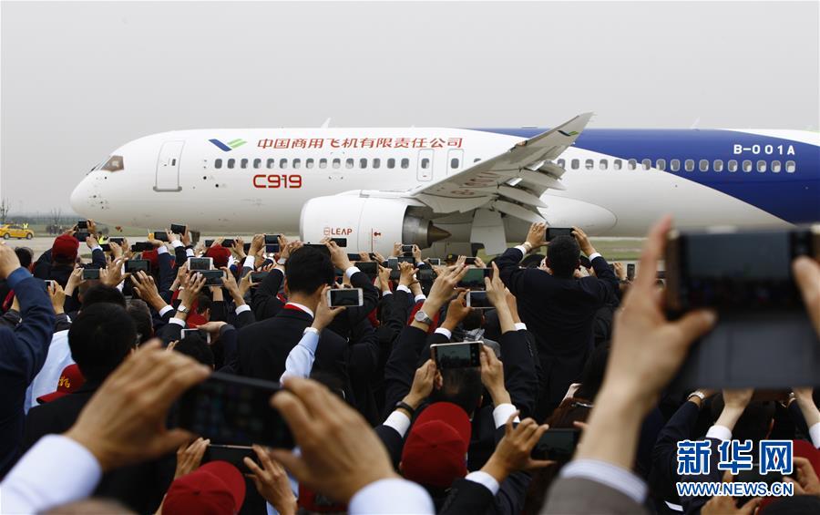 国产大型客机C919在上海浦东国际机场首飞成功(2017年5月5日摄)。新华社记者方喆摄