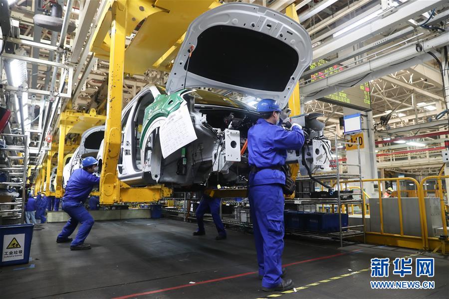 工人在上汽临港工厂总装车间生产线上作业(2月27日摄)。新华社记者丁汀摄
