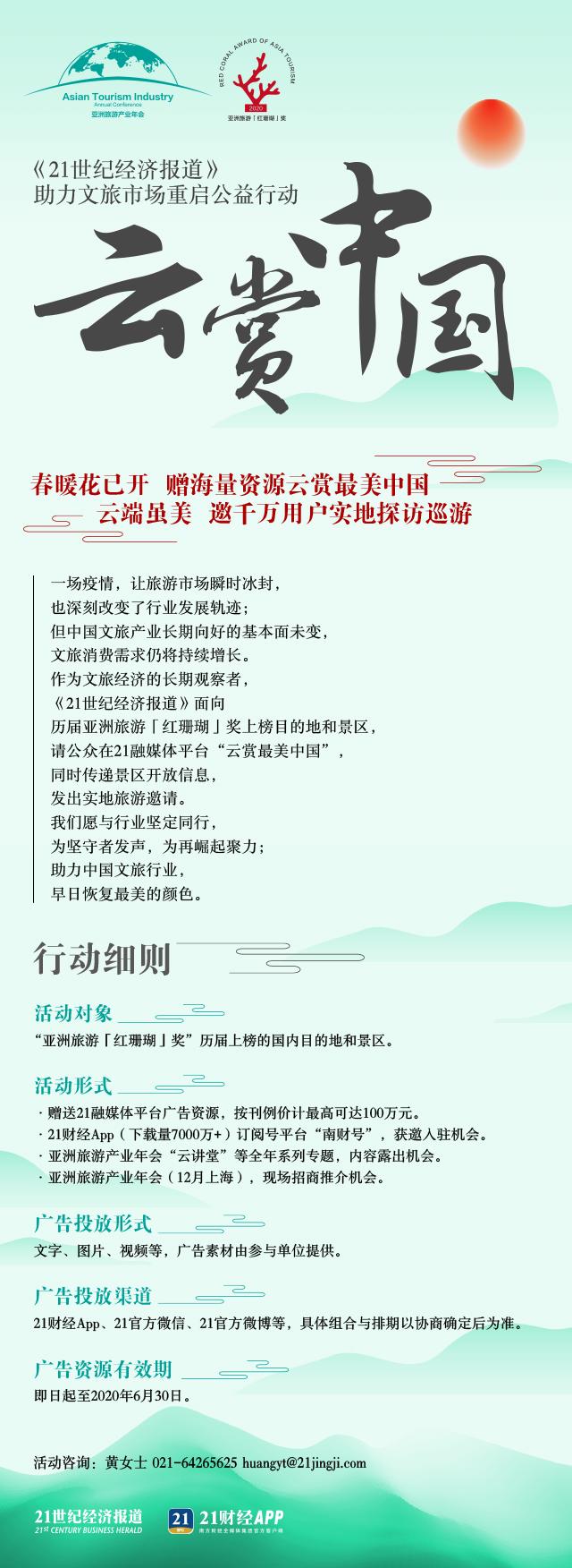 春暖花已开,赠海量资源云赏最美中国;云端虽美,邀千万用户实地探访巡游。在文旅行业亟待疫后重启的关键时刻,21推出硬核驰援计划:“云赏中国——21世纪经济报道助力文旅市场重启公益行动”。