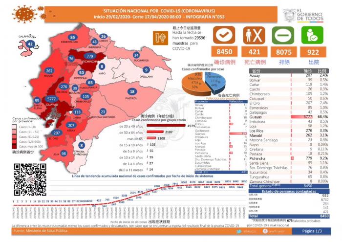 图为厄瓜多尔卫生部4月17日公布的数据。来源:厄瓜多尔华人网