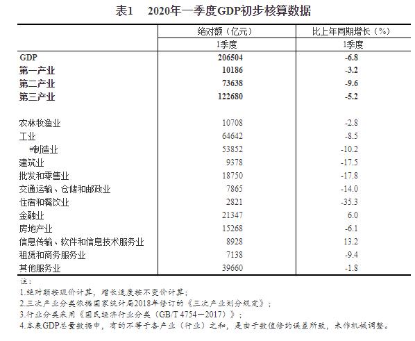 4月18日,国家统计局公布2020年一季度GDP初步核算结果,其中,信息传输、软件和信息技术服务业同比增长13.2%,金融业同比增长6%,住宿和餐饮业同比下降35.3%。