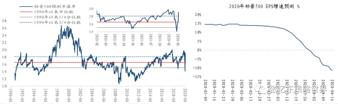 我认为,在4月底结束之后,会迎来新一轮的盈利下调。 我倾向于说,至少2020年,美国标500的盈利预测应该是-10%,或者说负的更多,这种可能性更大一点,动态市盈率有可能就到了20倍左右了。道琼斯到850日线的牛熊分界线,大概24300的位置差不多了,现在也就24000点左右,空间是基本到位。而对于标普而言,可能2900左右也偏贵了,现在大概是2700到2800点。