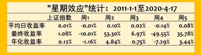 (2)是否存在所谓的“星期效应”?存在,但是不稳定。A股市场存在一个“十年河东十年河西"的“星期效应”。