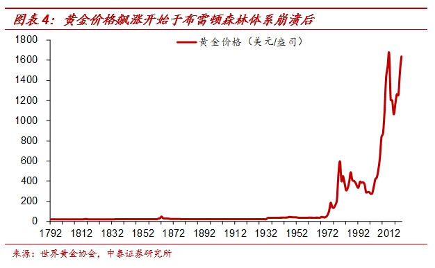 正是由于天然的稀缺性,黄金成为了天然的货币。早在公元前的古罗马时代,黄金就开始作为货币来使用。在19世纪的时候,随着纸币的大量发行和兴起,金本位制度开始盛行,黄金依然是货币体系的核心,因为纸币发行都是以黄金为背书的。例如,1816年英国以法律的形式确立了金本位制度,1900年美国国会通过了《金本位法案》。