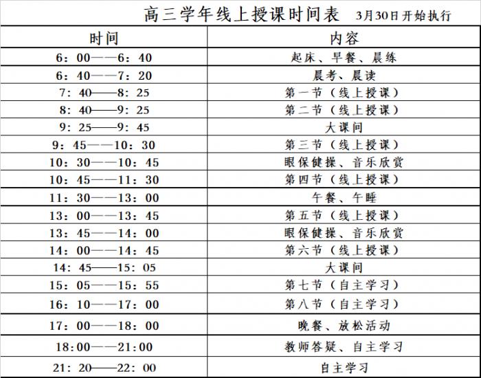 抱怨之余,面对即将到来的高考,孩子们也毫不松懈。记者从曹明明的网课课程表看到,从早上6点40到晚上10点的安排都非常充实,与往年高考前夕的紧张节奏区别不大。