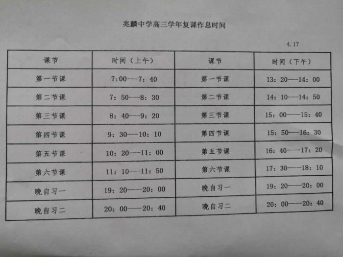 “执著追梦的高三学子们:史上‘最长寒假’在你们的期盼中终于要结束了,返校复课的日子终于要来了。按照省里统一部署, 4月7日我校高三年级将正式返校复课!家会因你的复课重归宁静,麟园会因你们的返校而再现欢腾。”