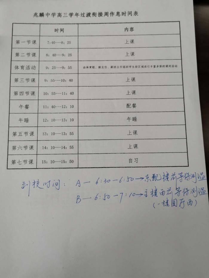 “亲爱的同学们,非常时期,我们务必严格遵从学校的相关规定及抗疫要求,我们要明白,学校所做的诸多努力,都是从我们的健康和发展考虑的,让我们携手防疫,共克时艰,逐梦高考,圆梦二〇。”在兆麟中学给高三学子的那封信最后,这样写道。