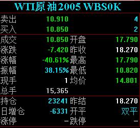 截至北京时间21:08,即将交货的WTI 5月原油期货跌破11美元/桶,为1998年12月以来首次,日内跌幅达40%。